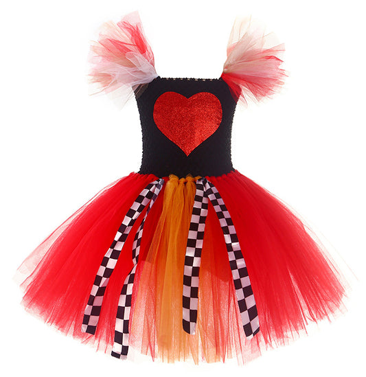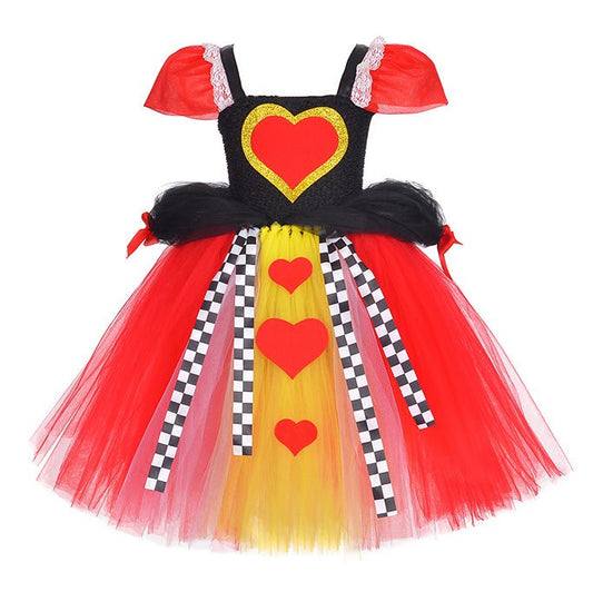 Princess Girl Alice In Wonderlan Tutu Dress Kids Knee Length Queen Heart Birthday Cosplay Cartoon Costume For Halloween Carnival