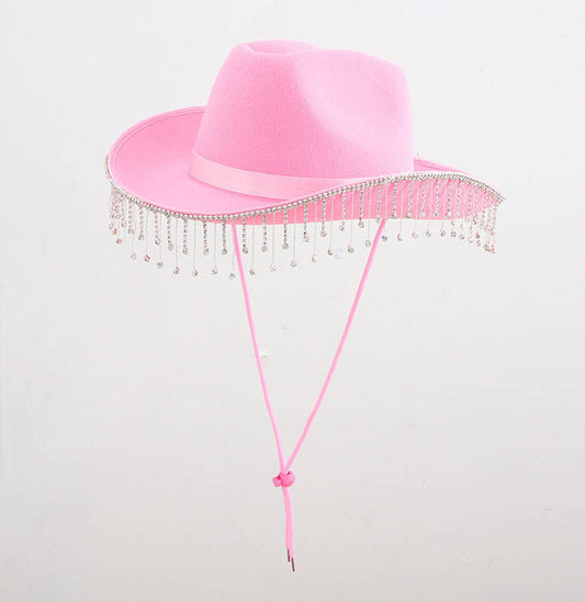 Pink Rhinestone Tassel Rave Party Cowboy Hat
