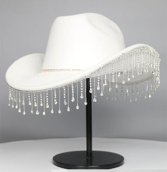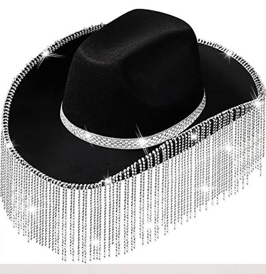 Carnival Halloween Cowboy Hat with Long Rhinestone Tassels