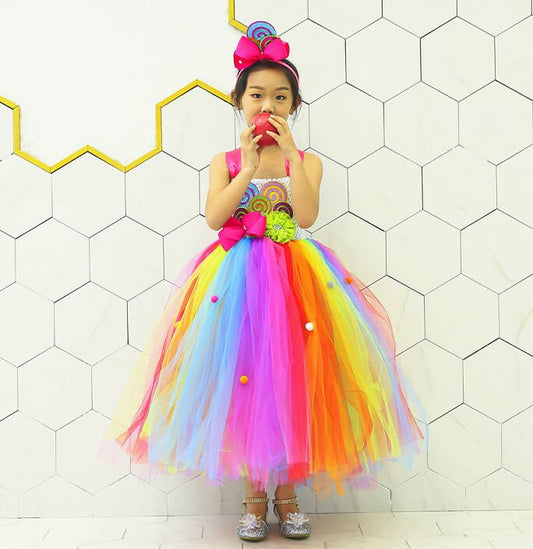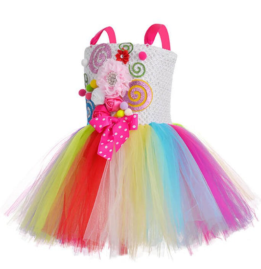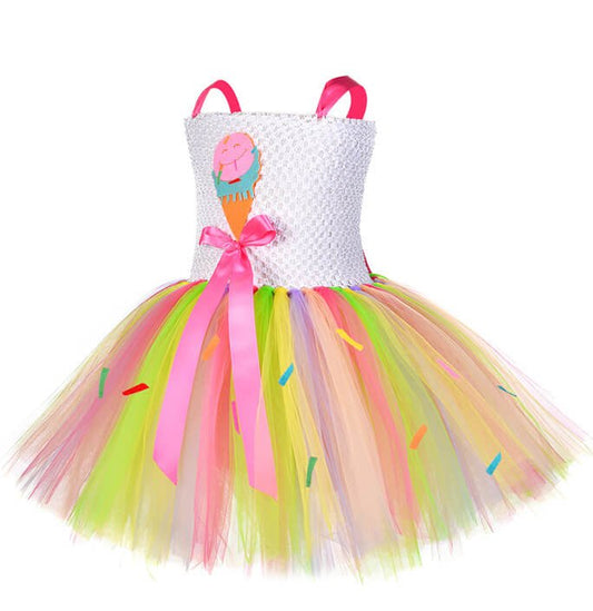 Girls Ice Cream Pattern Colorful Tutu Dress
