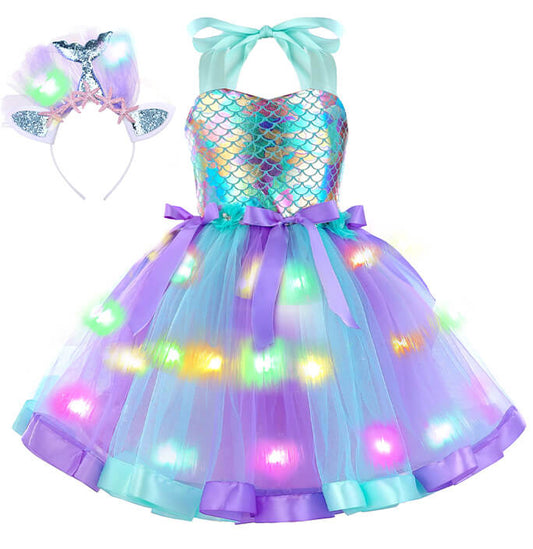 Girls LED Light Fish Scale Sequins Mermaid Costume