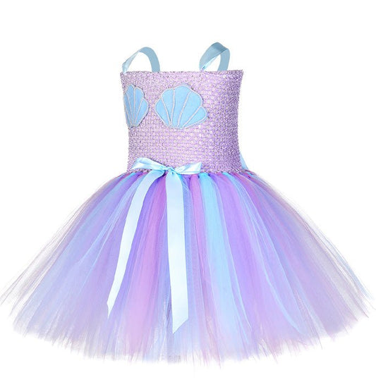Girls Little Mermaid Bow Shell Tulle Festive Party Costume