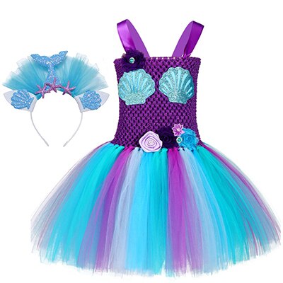 Girls Shell Pearl Little Mermaid Suit Tutu Dress