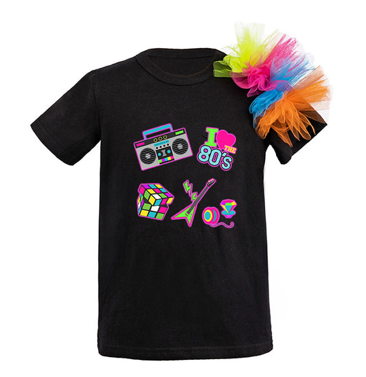 Girls Retro Printed T-Shirt Skirt Party Set Costume