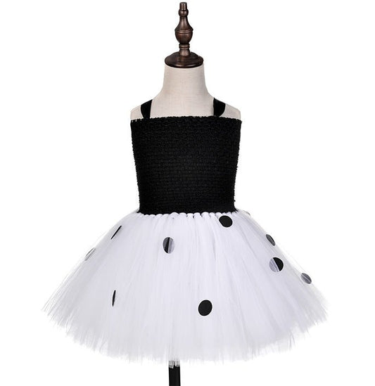 Girls 20s Modern Black Polka Dot Tutu Dress